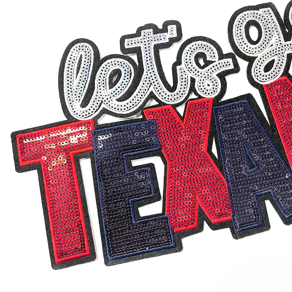 11IN Custom Big Letter Patch Chiefs Sequin Team Lets Go Cowboys Texans Lions Iron on Patches for Clothing Bag Sportswear DIY