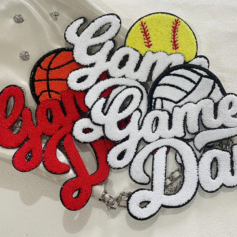 Fashion Large Sports Game Day Volleyball Soccer Softball Iron on Letter Patches Game Day Basketball Chenille Patch for Women Man