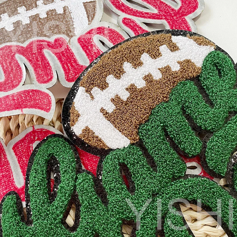 Popular Large 7 Colors Sport Chenille Letter Patches Iron on Sweatshirt Football Game Day Chenille Patches for Man Women