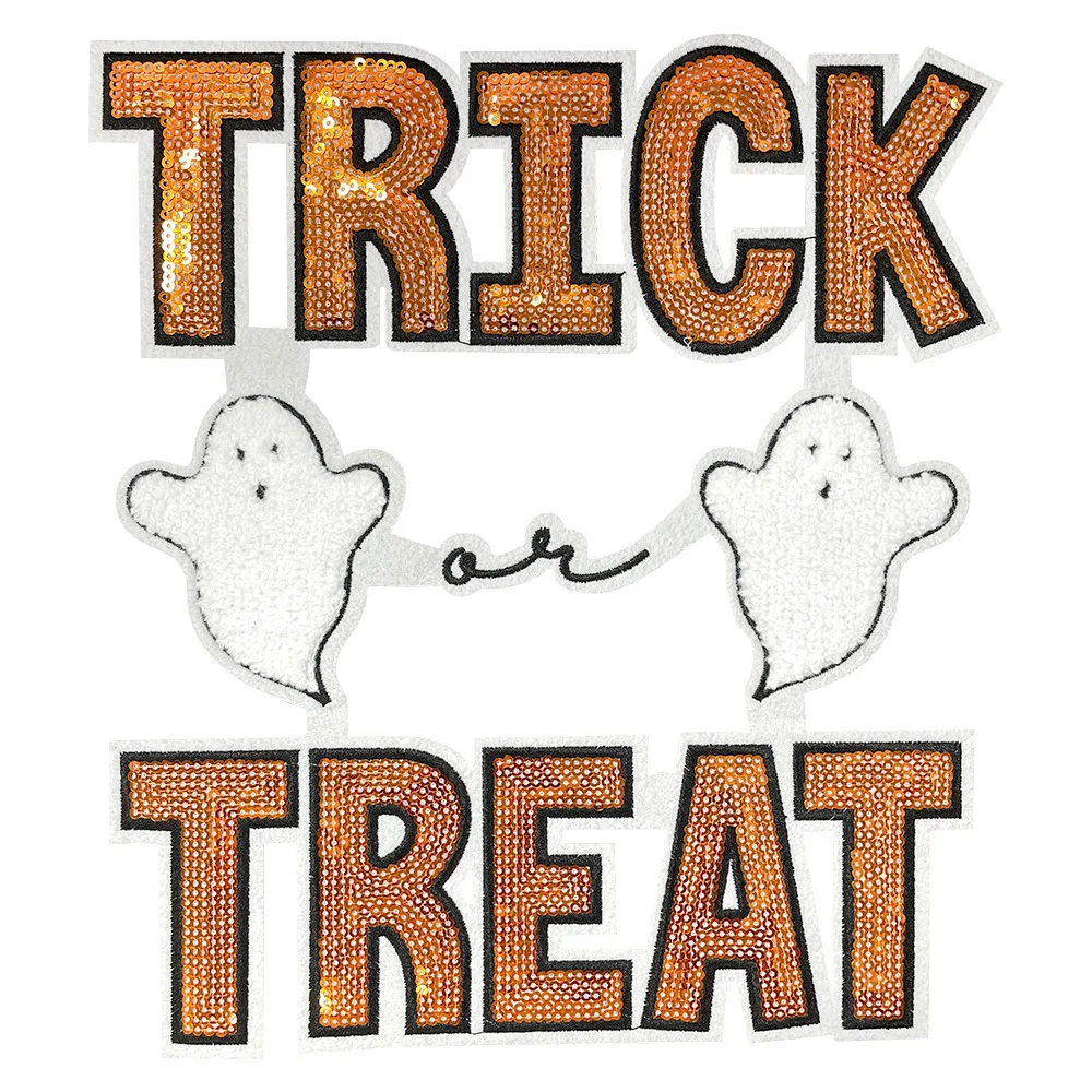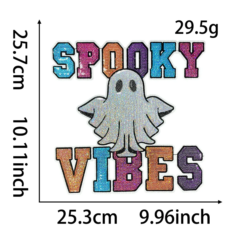Trendy Big Sequin Pumpkin Patches Iron on Spooky Season New Festive Thanksgiving Halloween Ghost Patches for Women Sweatshirt