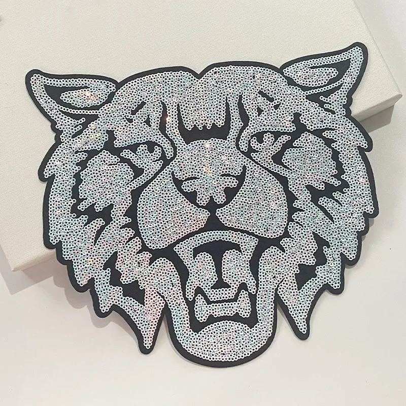 Trendy Large Sequin Patches Bulk Iron on Animal Man Women Sparkling Sequin Wildcats Patches for Clothing DIY
