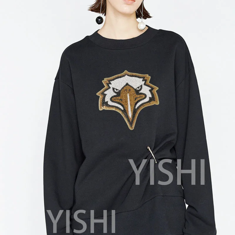 Wholesale Big Bling Sequin Patches Animal Mascot Eagles Iron on Patches for Adult Clothing Decoration Women Man