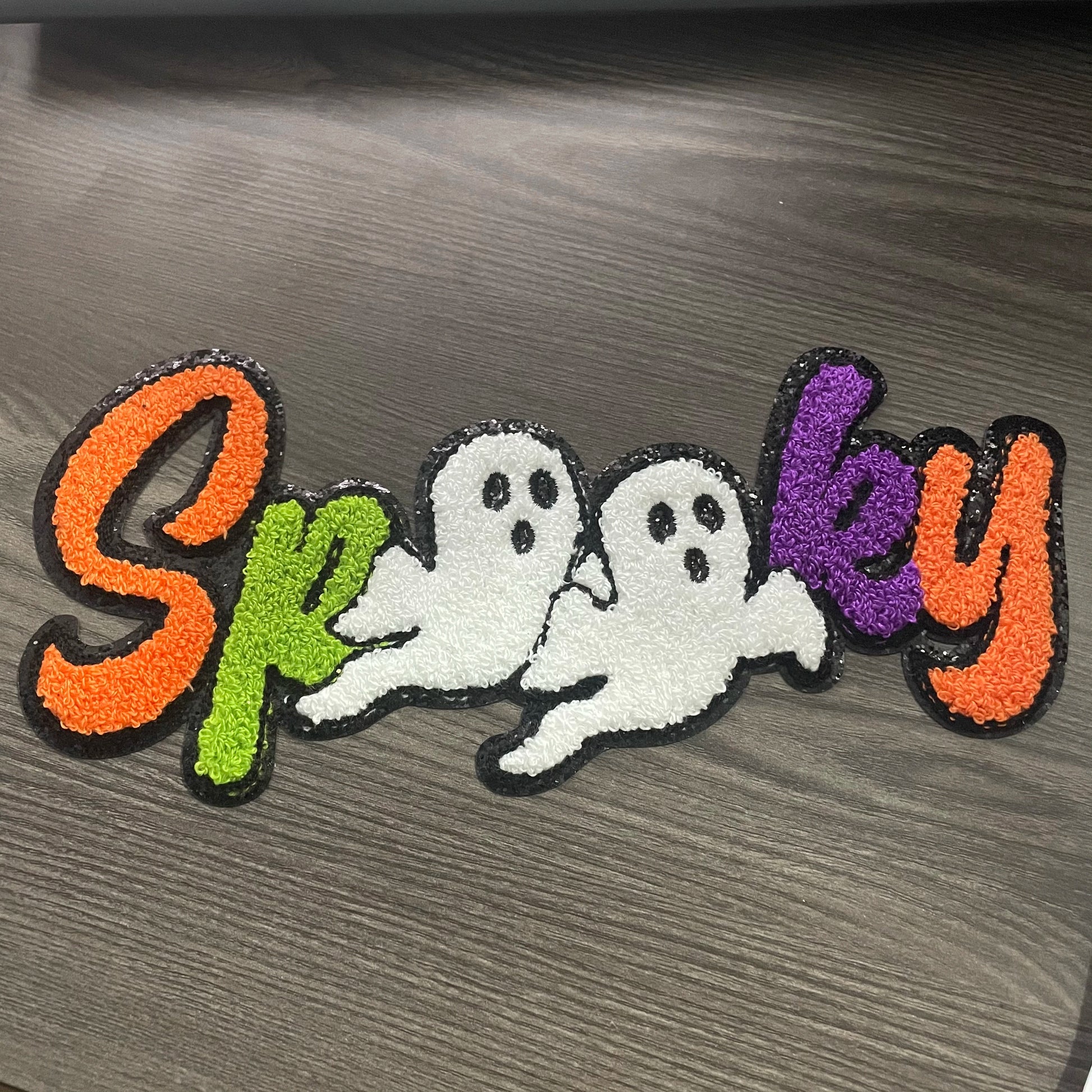 Wholesale Big Halloween Iron on Letter Patches Girl Colorful Chenille Pumpkin Ghost Spooky Chenille Patch for Man Women Clothes