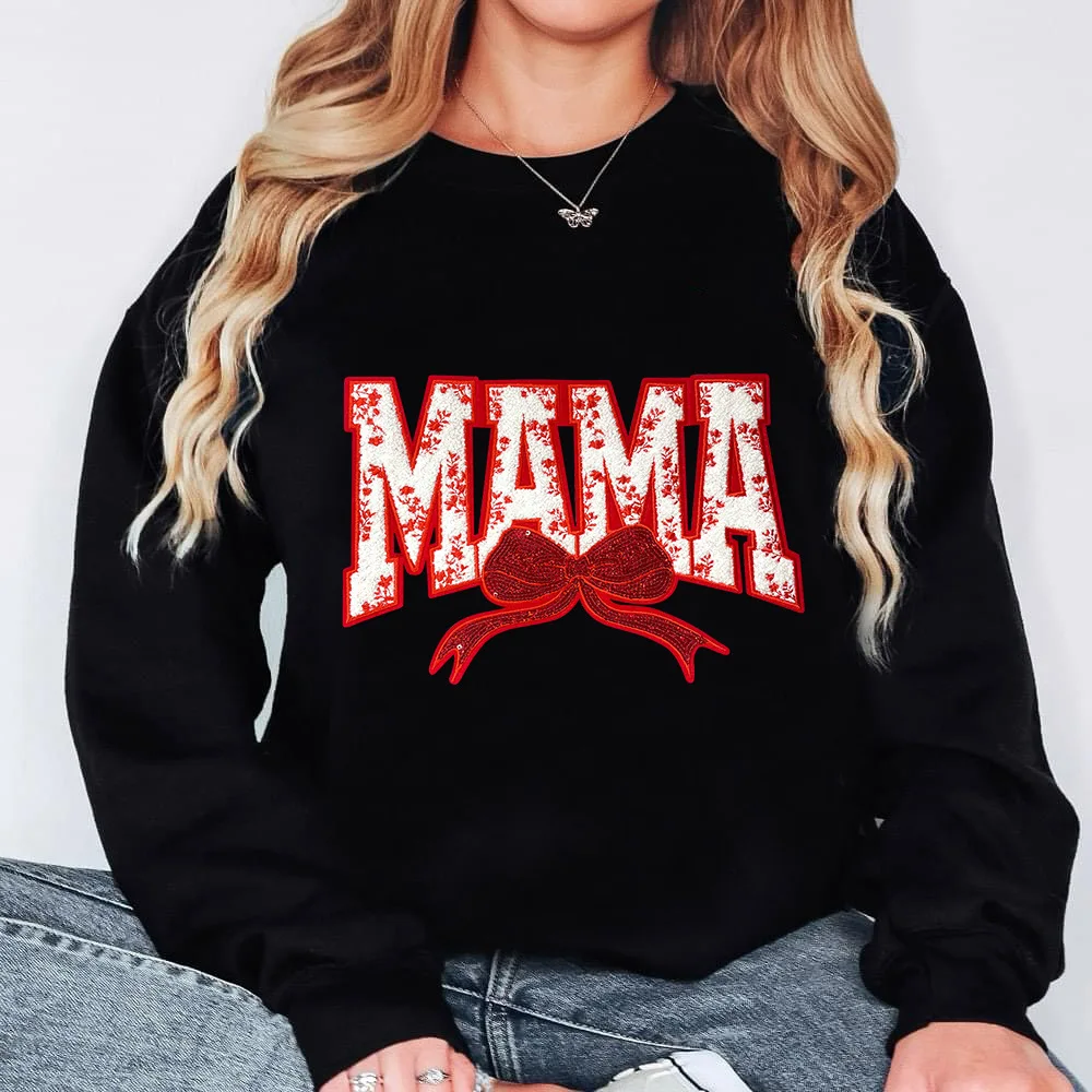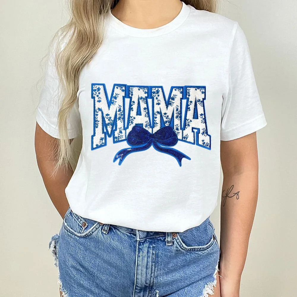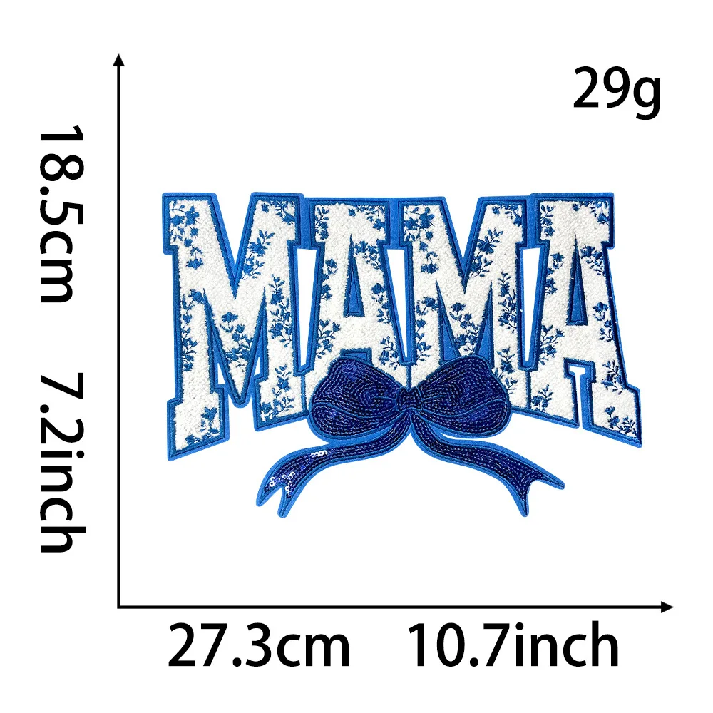 Wholesale Big Mama Patch Women Clothing Decoration Iron on Embroidery Mama Chenille Patch With Sequin Bow for Mom Gift