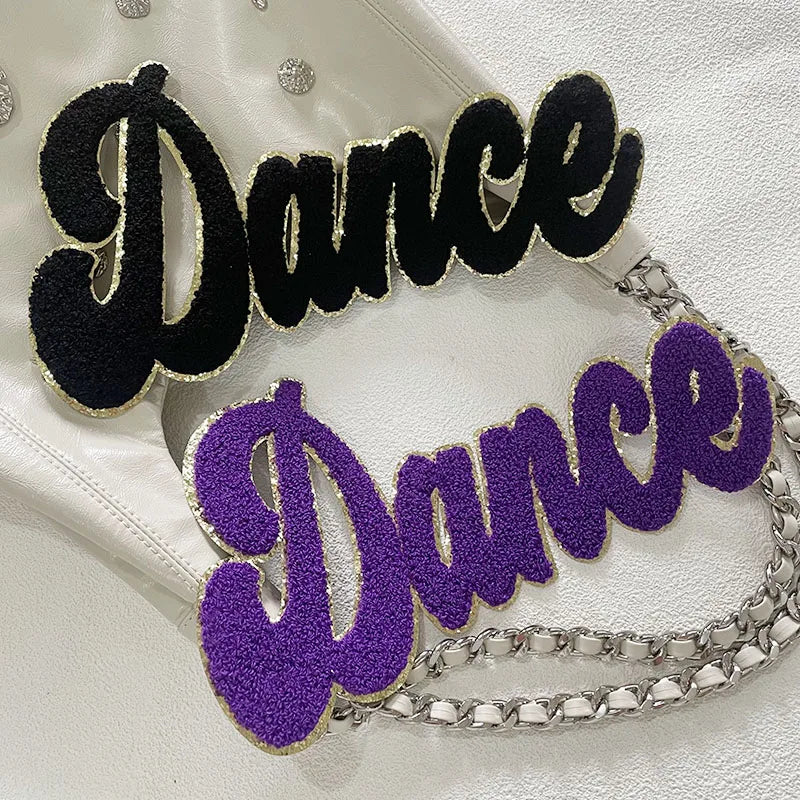 Wholesale Heat Transfer Chenille Patch Hoodies Letters Patches Chenille Colorful Dance Iron on Patch for Clothes