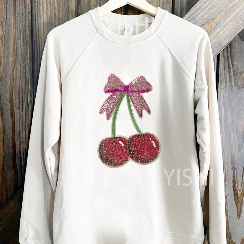 Wholesale Sequin Patches Iron on Women Garment Accessories Big Bow Tie Cherry Sequin Embroidery Patches for Clothing DIY