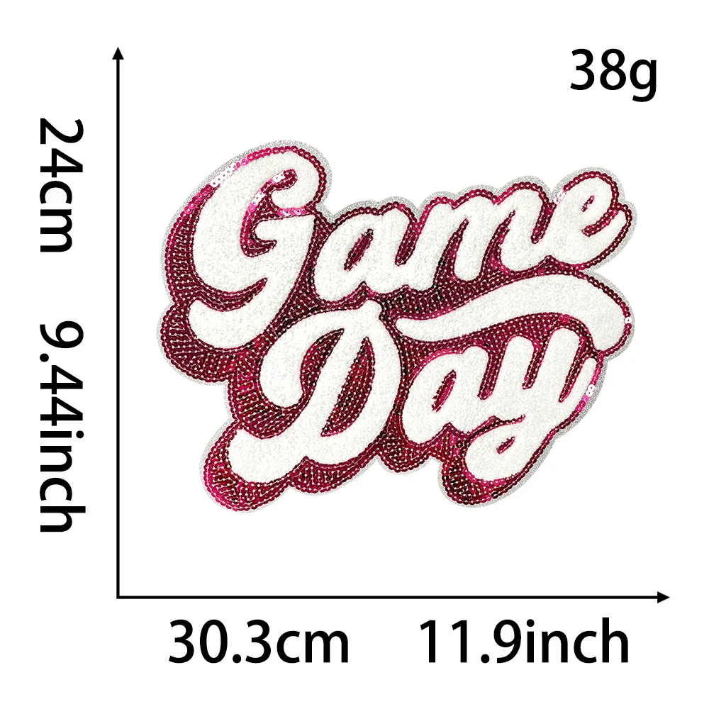 Wholesale Towel Embroidery Sequin Game Day Patch Chenille Game Day Iron on Patch for DIY Team Uniforms Banners